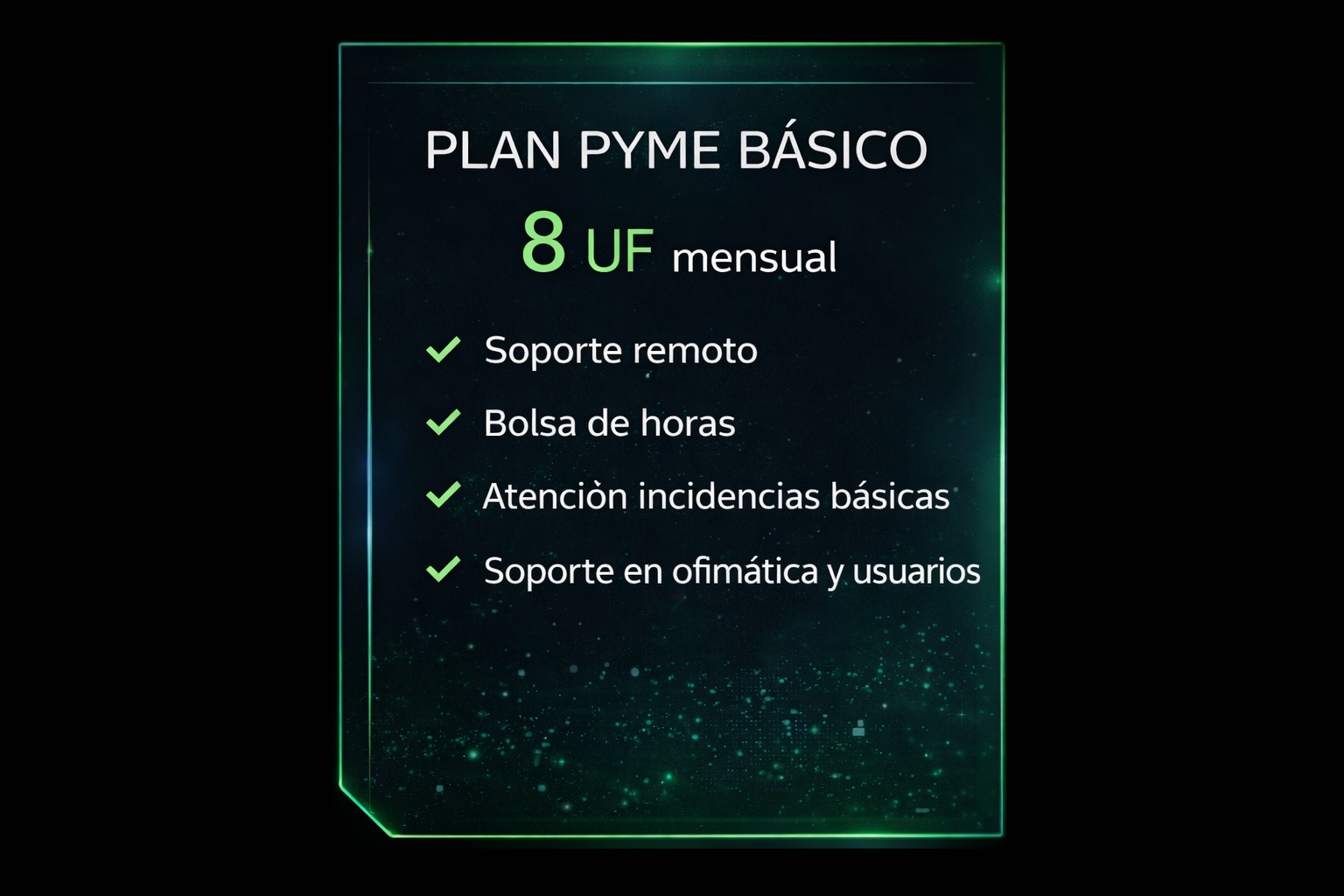 Ideal para negocios con 3 a 8 equipos que requieren asistencia remota, configuración básica y soporte a usuarios.