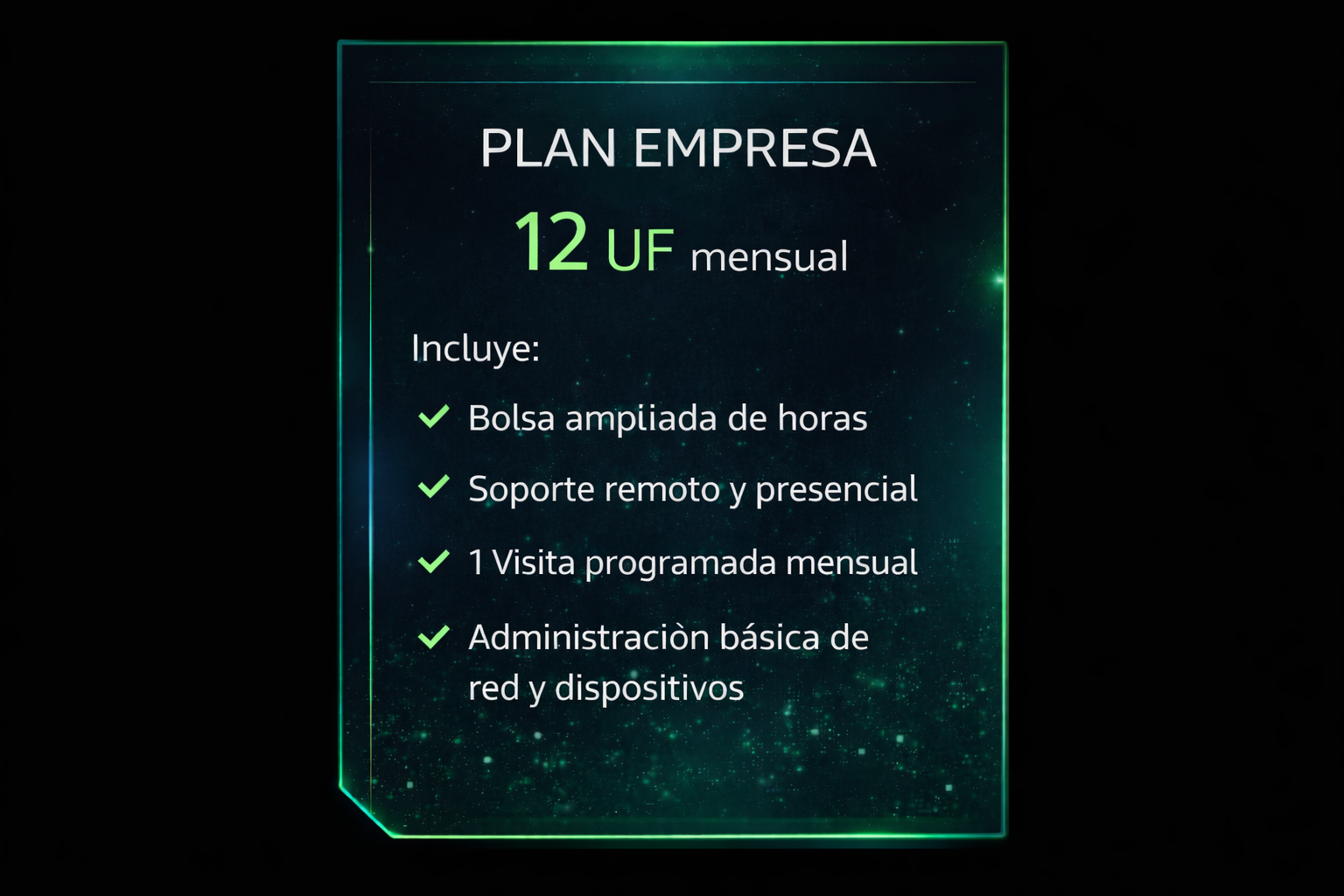 Diseñado para empresas en crecimiento que necesitan soporte regular, visitas técnicas y gestión básica de su infraestructura.